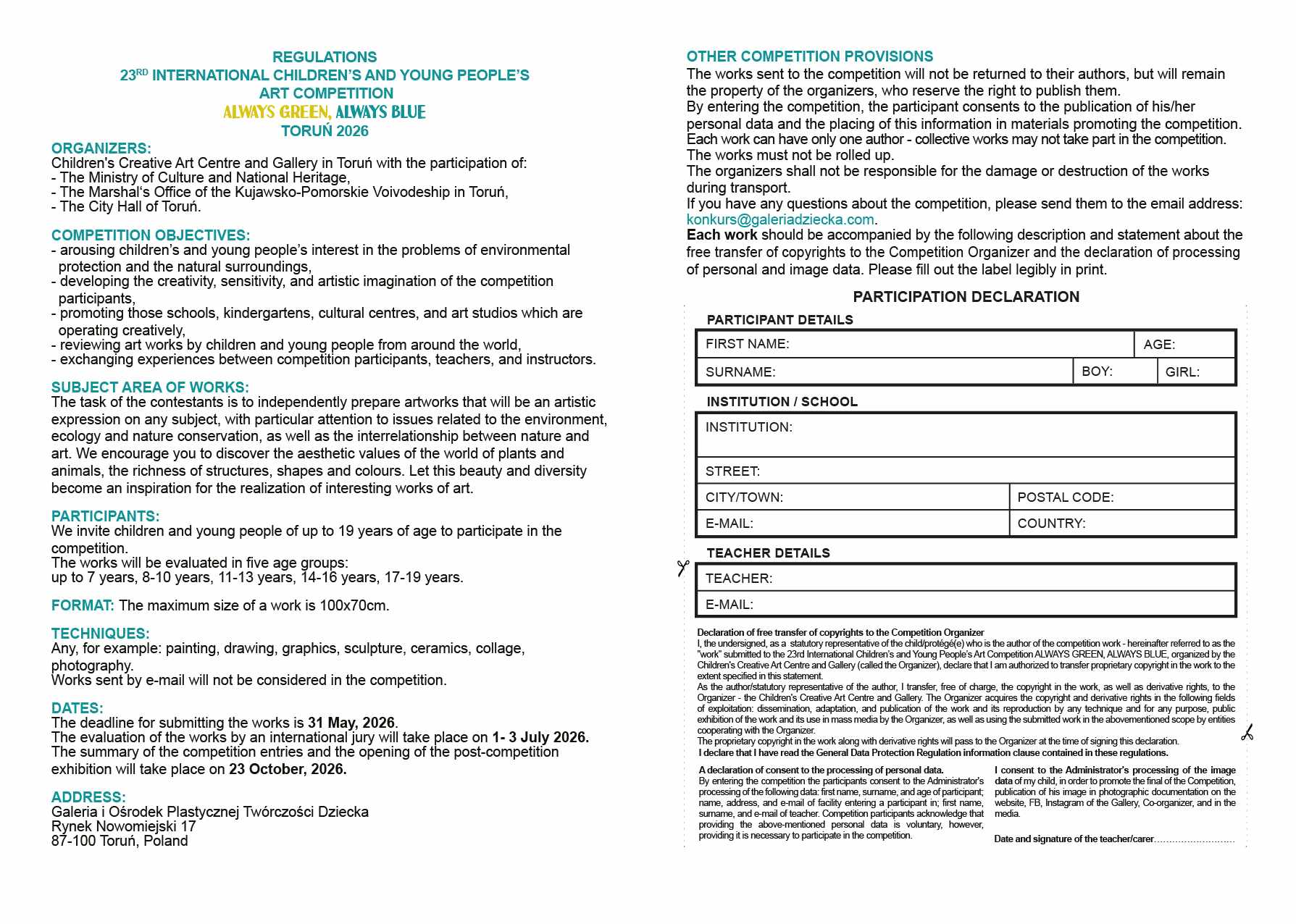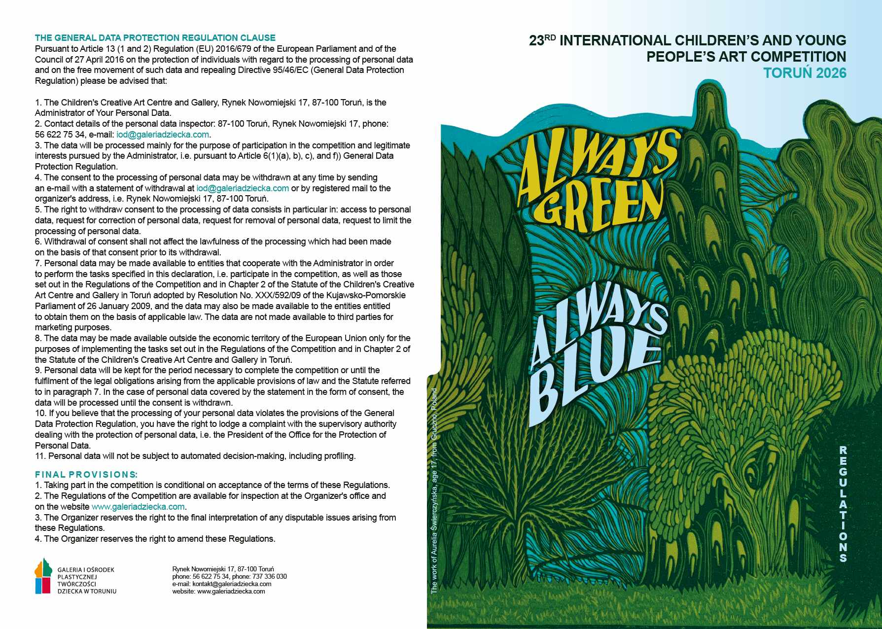 23rd INTERNATIONAL CHILDREN'S AND YOUNG PEOPLE'S ART COMPETITION "ALWAYS GREEN, ALWAYS BLUE" TORUŃ - POLAND 2026