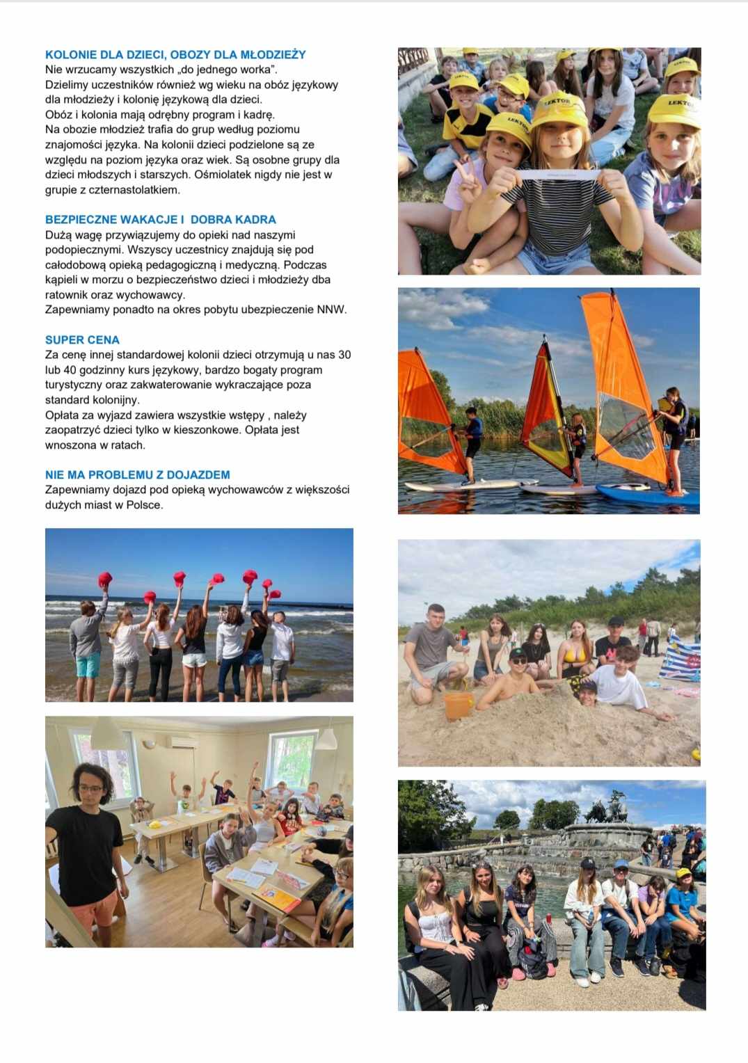 Chętnie zaprosimy Państwa dzieci do udziału w koloniach i obozach językowych ( kolonie- dzieci młodsze; obóz- młodzież).