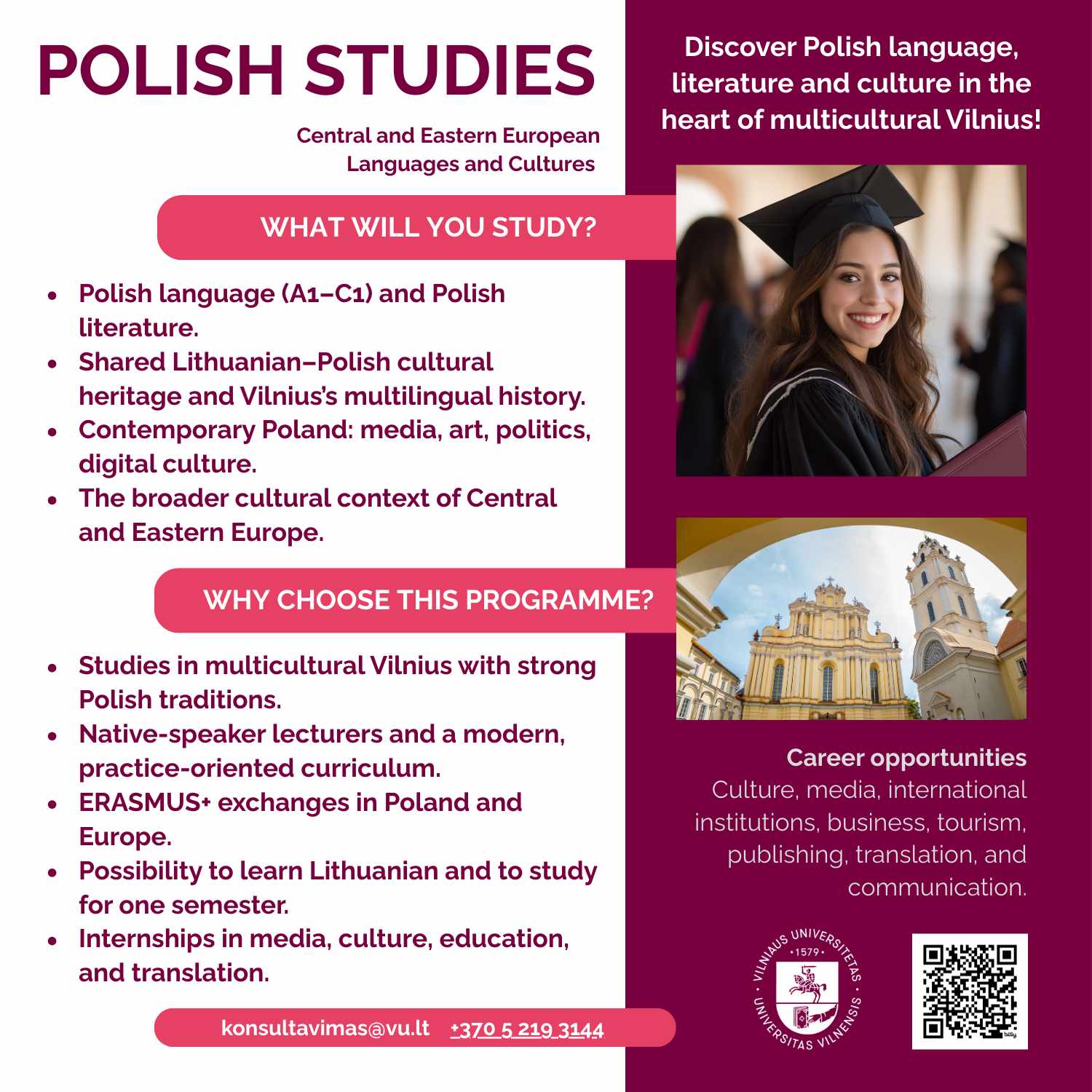 We are pleased to share a new opportunity for international students interested in studying Polish language and culture in Europe. Starting with the 2025–2026 admissions cycle, the Polish Studies programme at Vilnius University is actively opening its offer to applicants from abroad, including young people of Polish descent living outside Poland.