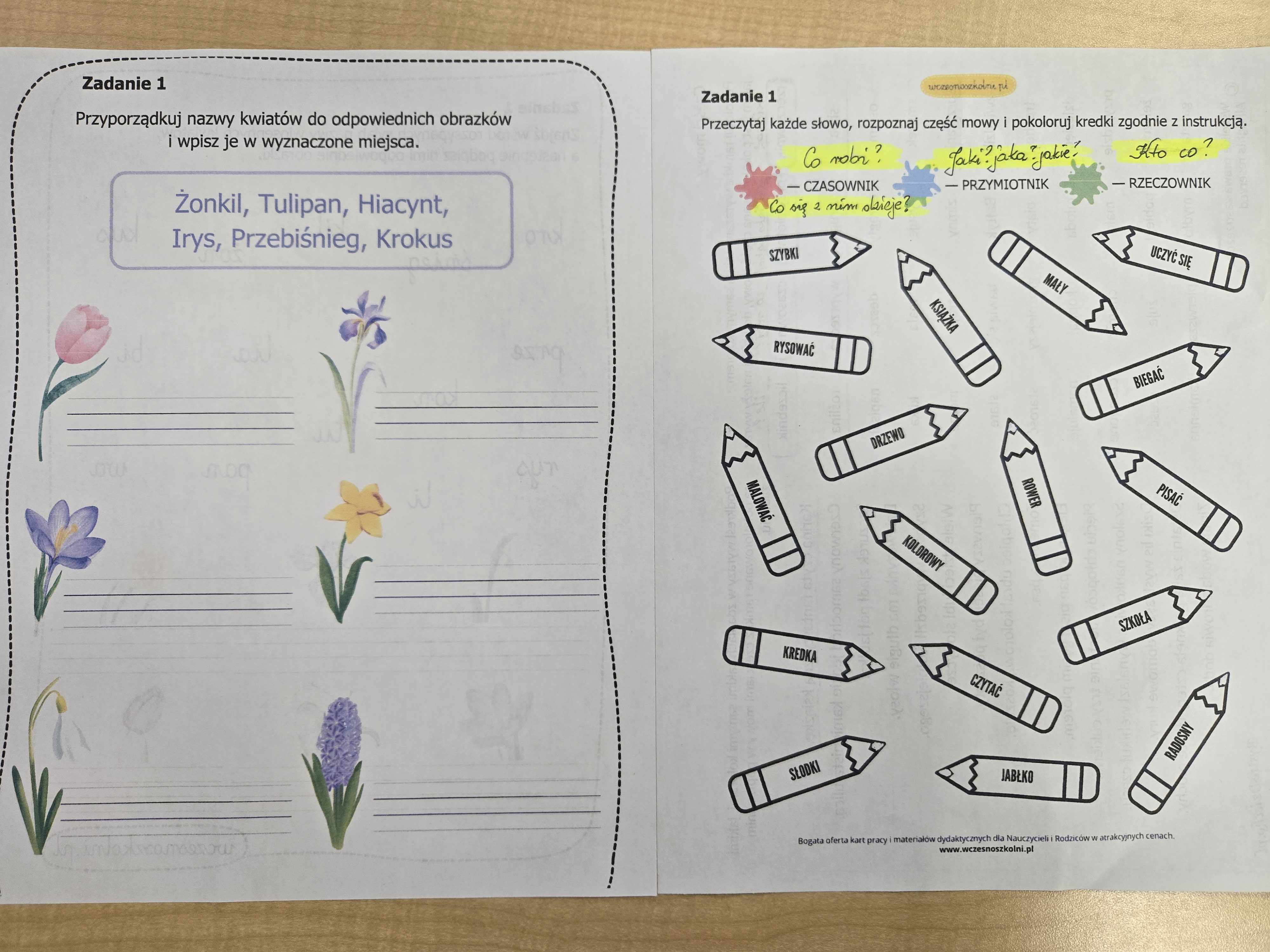 * Poćwicz znajomość głosek/liter- kartka xero- ,,Do ćwiczeń wymowy i ćwiczeń słuchowych".